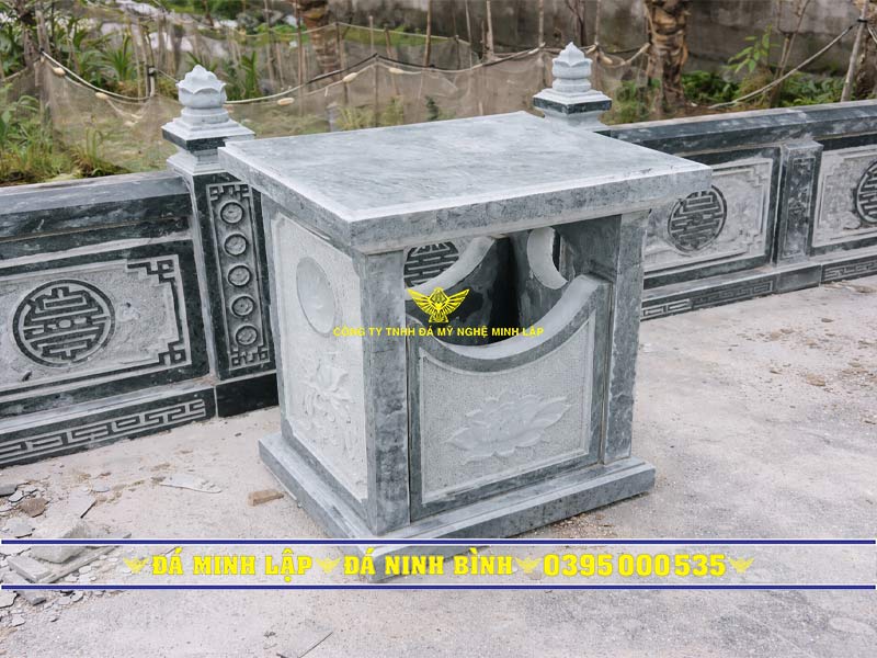 sản phẩm hóa vàng mã bằng đá được đá Minh Lập chế tác trên chất liệu đá xanh rêu truyề thống, có mẫu mã phong cách mới hiện đại dễ sử dụng